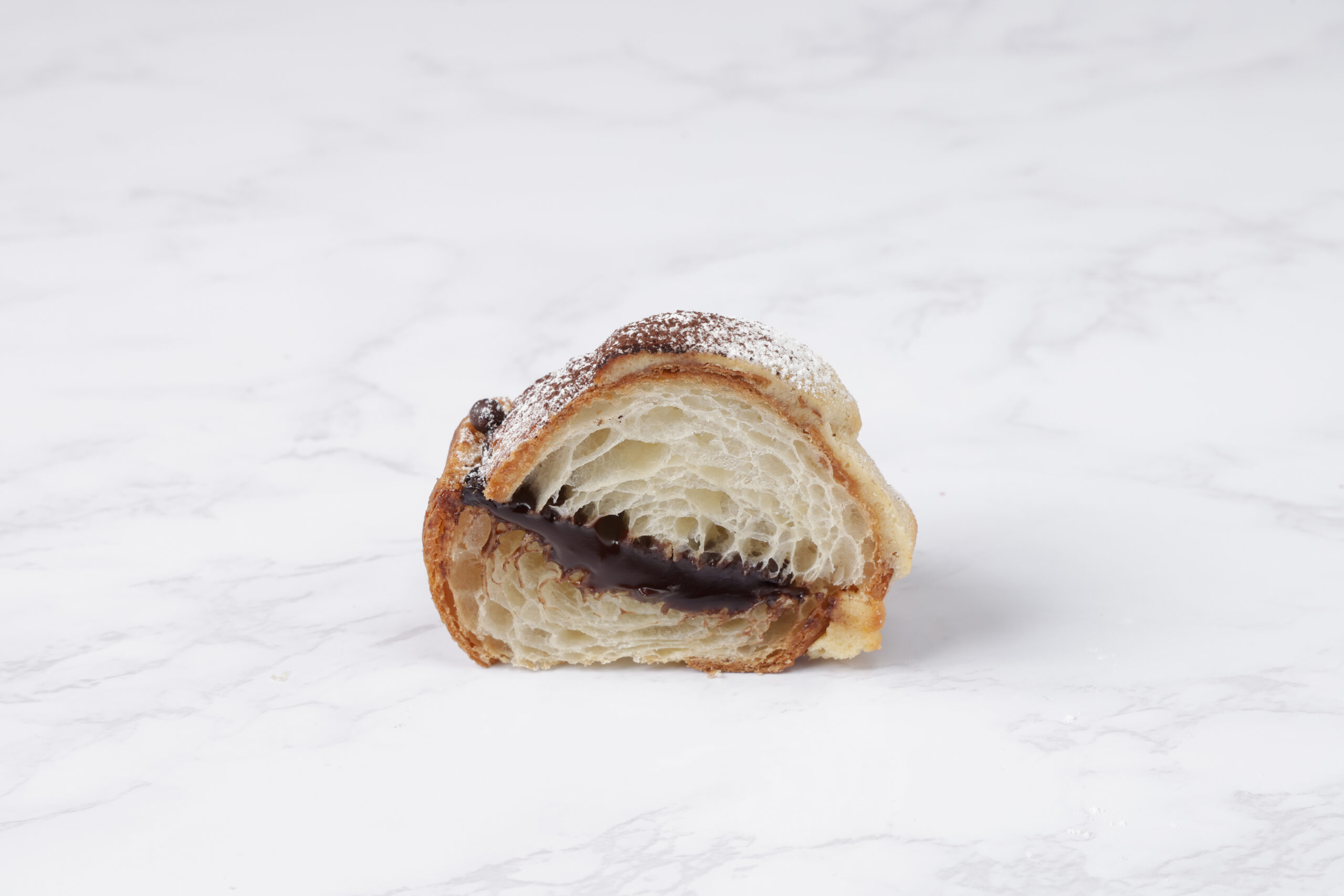 発酵バタークロワッサンにアーモンドクリームを絞って焼き上げ、チョコクリームをサンドしました。