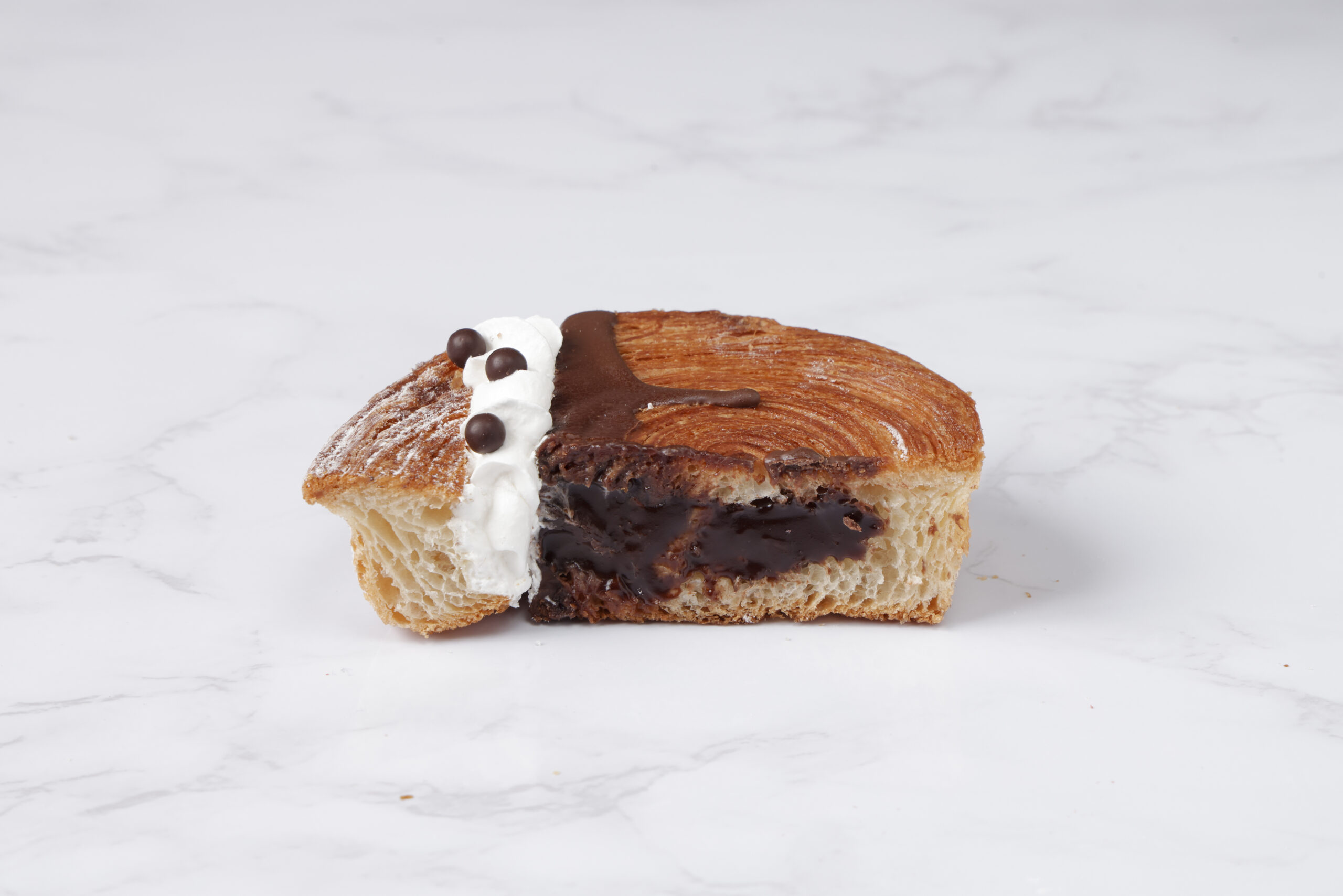 ツリーリングスの形をしたクロワッサンを生チョコクリームとホイップクリームで仕上げました。