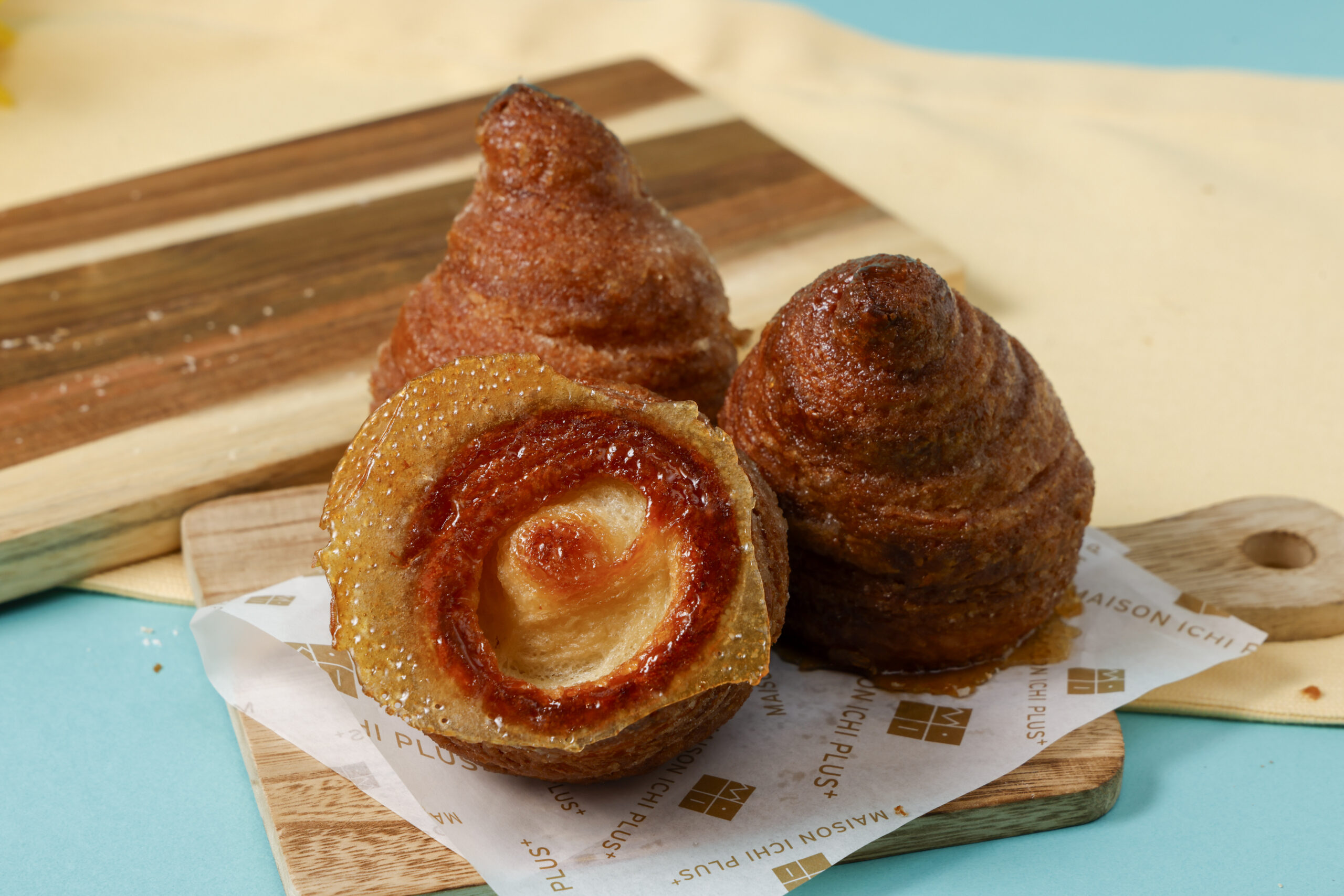 溶かしたハチミツバターに越谷クロワッサンをくぐらせ、グラニュー糖をまぶして焼きあげました