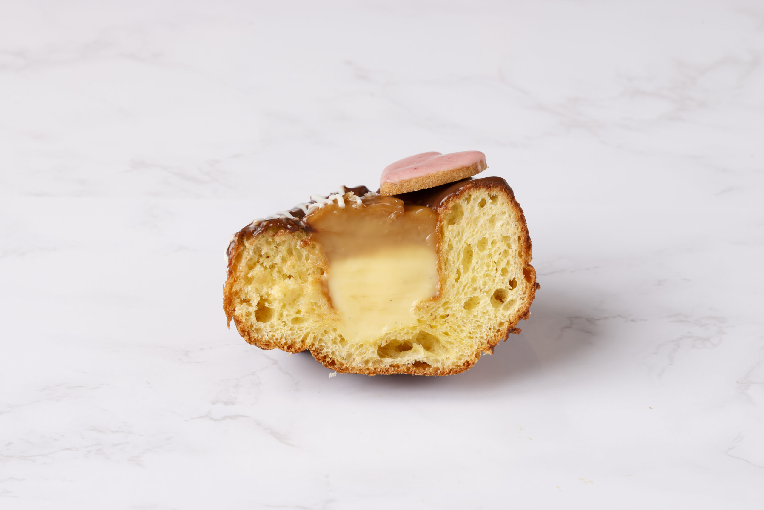 ブリオッシュ生地をリング状に焼いてカスタードクリームとキャラメルクリームを絞りました。